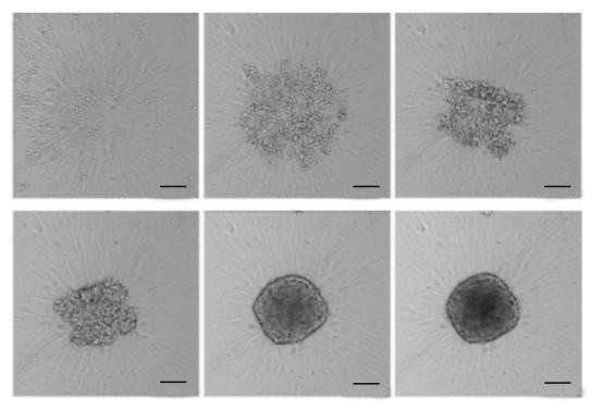 Fig.1 The MDA-MB-231 cell suspension was subjected to static culture for 4-7 days, resulting in the formation of a homogeneous and uniformly sized 3D sphere model. Scale bar: 200 μm.
