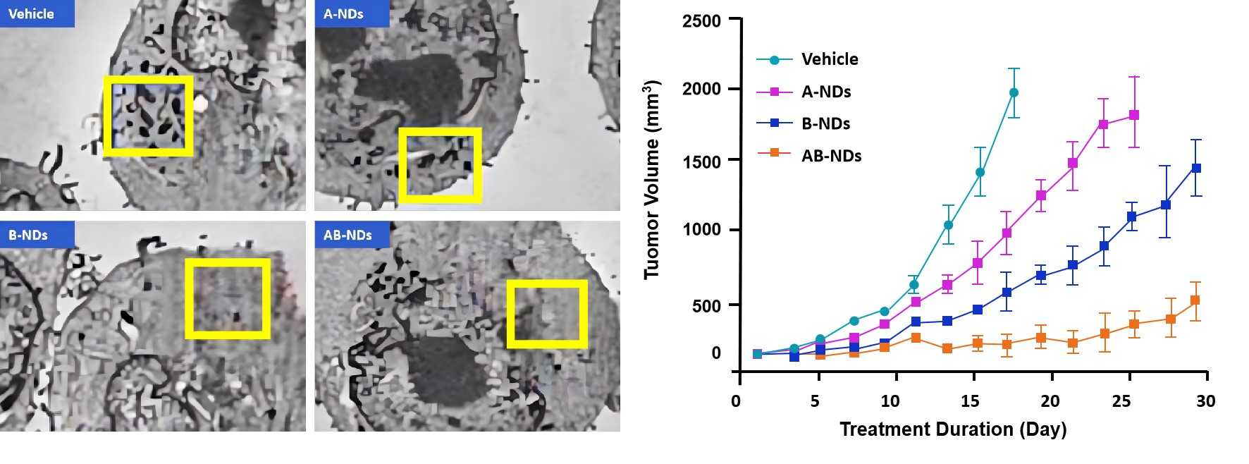 • Potent Tumor Suppression: The combination of drug A + drug B nanodrug with laser irradiation resulted in the most significant inhibition of primary tumor growth among all experimental groups, demonstrating powerful synergistic therapeutic activity.